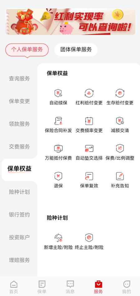 2.點(diǎn)擊“保單權(quán)益”